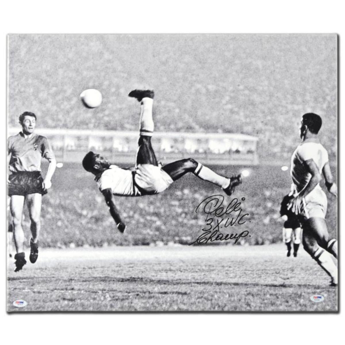 "Scissor Kick" Autographed Print on Gallery Wrapped Canvas, Hand Signed by Legendary Brazilian Footb