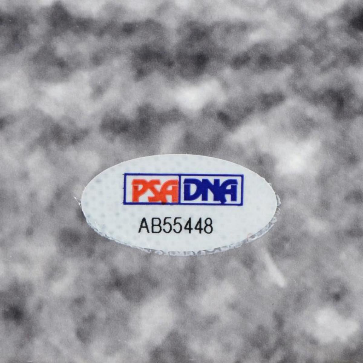 "Scissor Kick" is a gallery wrapped print on canvas that is autographed by legendary Brazilian footballer, Pele! This piece was authenticated by PSA/DNA, which authenticates sports memorabilia using proprietary permanent invisible ink as well as a strand of synthetic DNA. Comes with PSA/DNA sticker bearing the registration number (# Z80916). We make no additional warranties. Measures approx. 20" x 25" (image). Reference #: 218817.