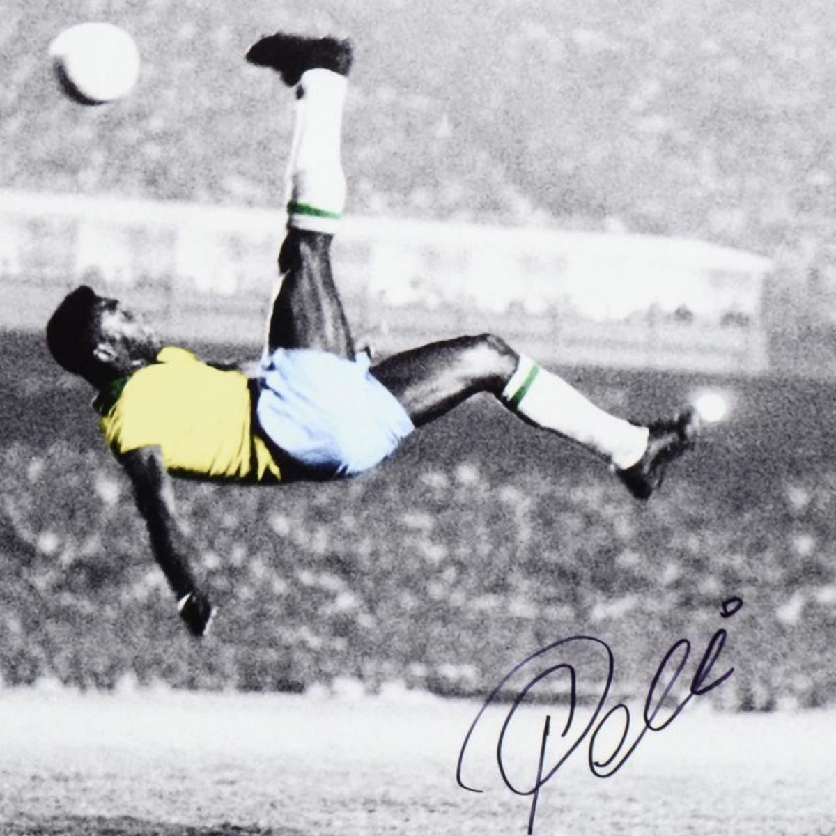 "Scissor Kick" Print, Autographed by Legendary Brazilian Footballer, Pele.