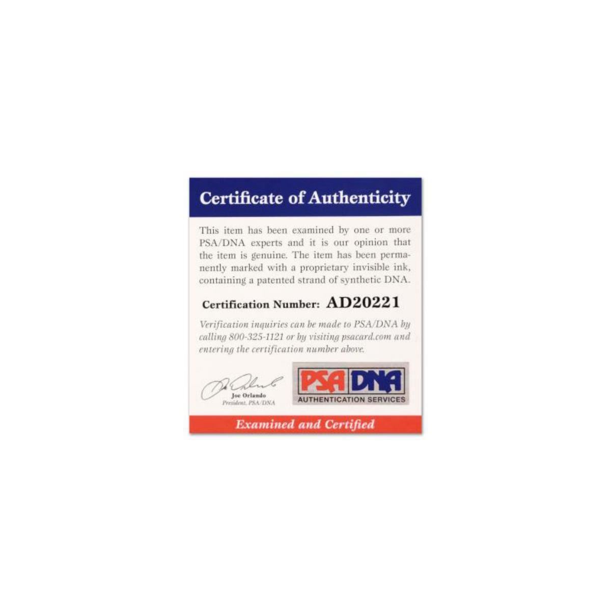 "Scissor Kick" is a print on paper that is autographed by legendary Brazilian footballer, Pele. This piece is presented with a Certificate of Authenticity from PSA/DNA, which authenticates sports memorabilia using proprietary permanent invisible ink as well as a strand of synthetic DNA. We make no additional warranties. Measures approx. 20" x 16" (image). Reference #: 222976.