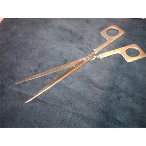 Sterling handled dressmakers scissor. Circa 1910. 9.5" long, 2.5" wide at handles. Blades marked Von Cleff Co. Germany. Handles marked "sterling 2202B." Sewing collectible.