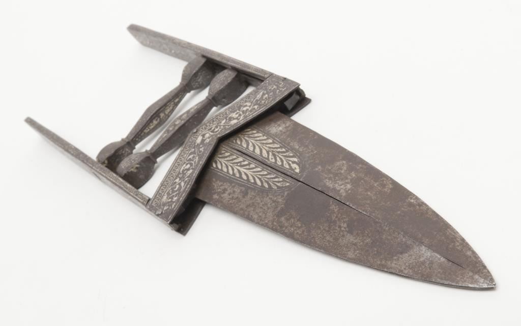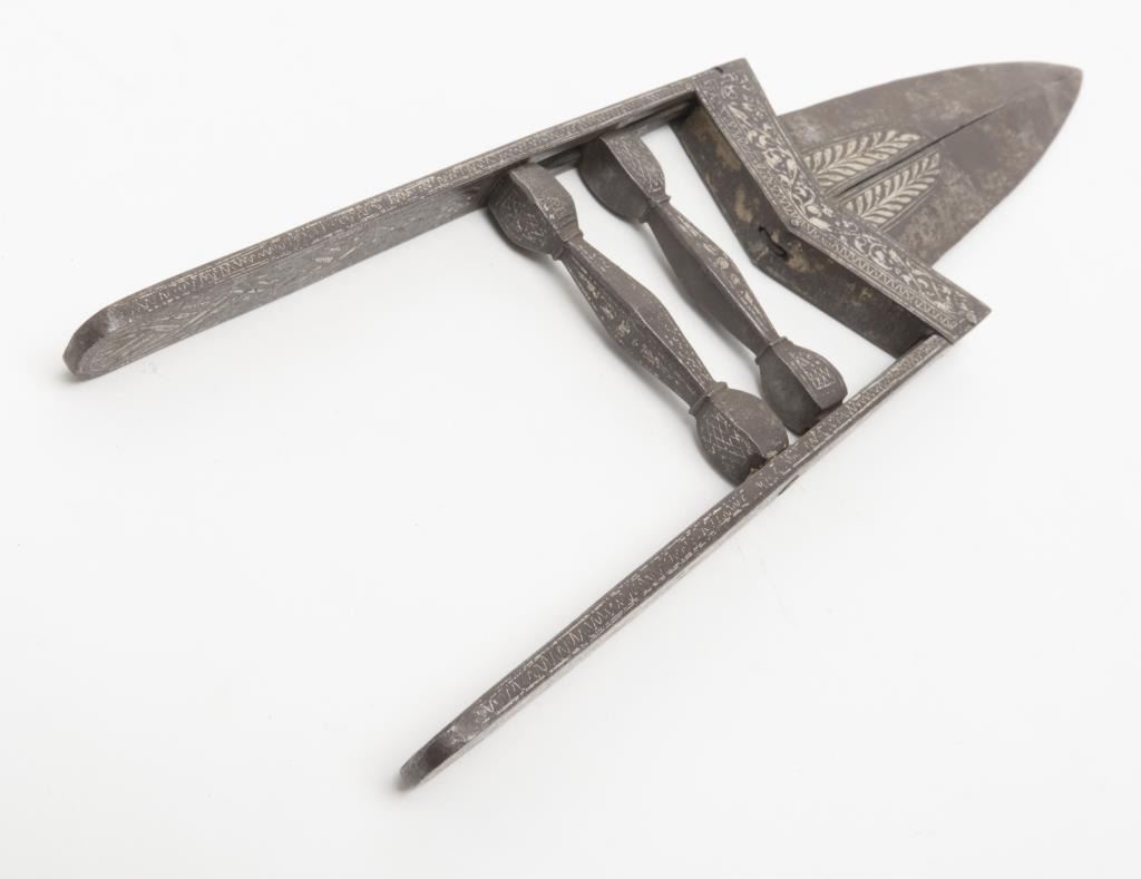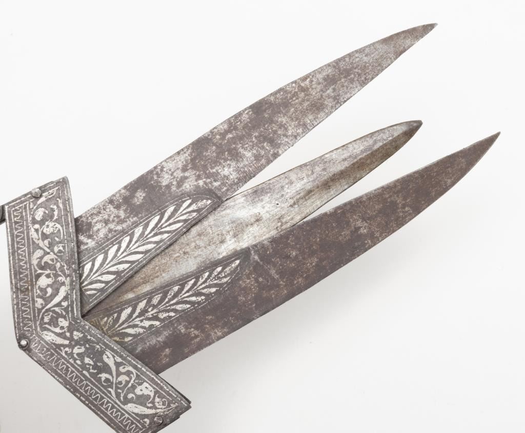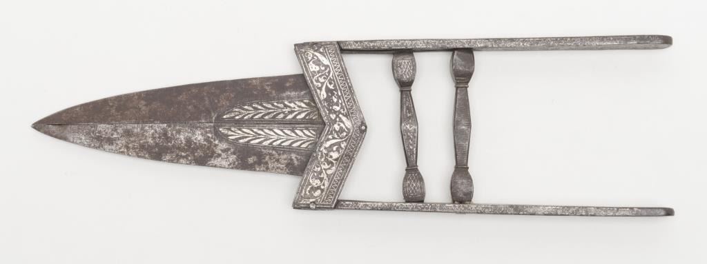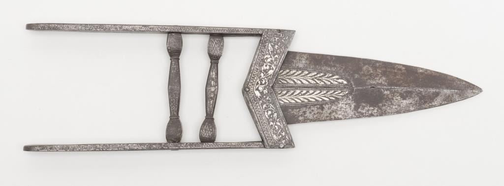 Scissor action Indian Katar with silver inlay from India. Late 19th to eraly 20th centuries. Est.; $500-$1000