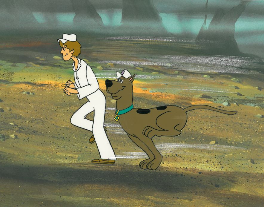 This 12-field cel of Scooby-Doo and Shaggy was used in the production of Scooby-Doo, Hanna Barbera Studios (circa late 1970's). COA included.