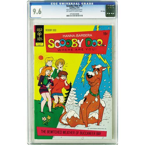 <B>Scooby Doo File Copies CGC Group (Gold Key, 1971-75).</B></I> With copies as nice as 9.6 included, this is a lot we'd love to spirit away to our own haunted castle. And we'd have done it too, if not for you meddling kids! Anyway, without further ado we'll note that every comic here is certified with "off-white to white" page quality unless otherwise noted. Included here are a <I>CGC 9.6</B></I> copy of #12 (CGC census 4/06: 5 in 9.6, none higher); <I>CGC 9.4</B></I> copies of #13 (2 in 9.4, none higher) and #30 (3 in 9.4, 4 higher); <I>CGC 9.2</B></I> copies of #9 (4 in 9.2, none higher), #10 (off-white pages; 1 in 9.2, 1 higher), #11 (2 in 9.2, none higher), #14 (2 in 9.2, 1 higher), #23 (2 in 9.2, 6 higher), #24 (3 in 9.2, 4 higher), and #26 (3 in 9.2, 3 higher); and <I>CGC 9.0</B></I> copies of #5 (1 in 9.0, 8 higher) and #6 (2 in 9.0, 3 higher). Overstreet 2006 NM- 9.2 value for group = $772. <I>From the Random House Archives.</B></I>