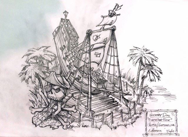 Scooby Doo Original Concept Drawing of the Pirate-ship ride for Spooky Island