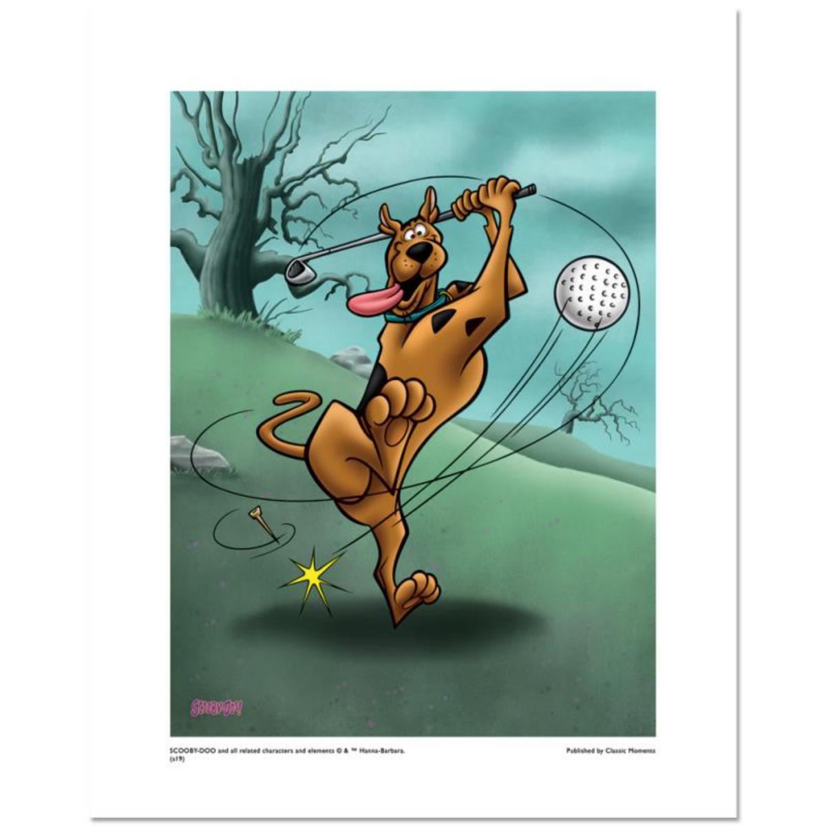 "Scooby Golf" is a limited edition giclee on paper from Hanna-Barbera featuring the iconic Scooby Doo. It comes numbered, with hologram seal, and a Certificate of Authenticity! Measures approx. 20 x 16" (with border), 16" x 12" (image). Reference #: 238268.