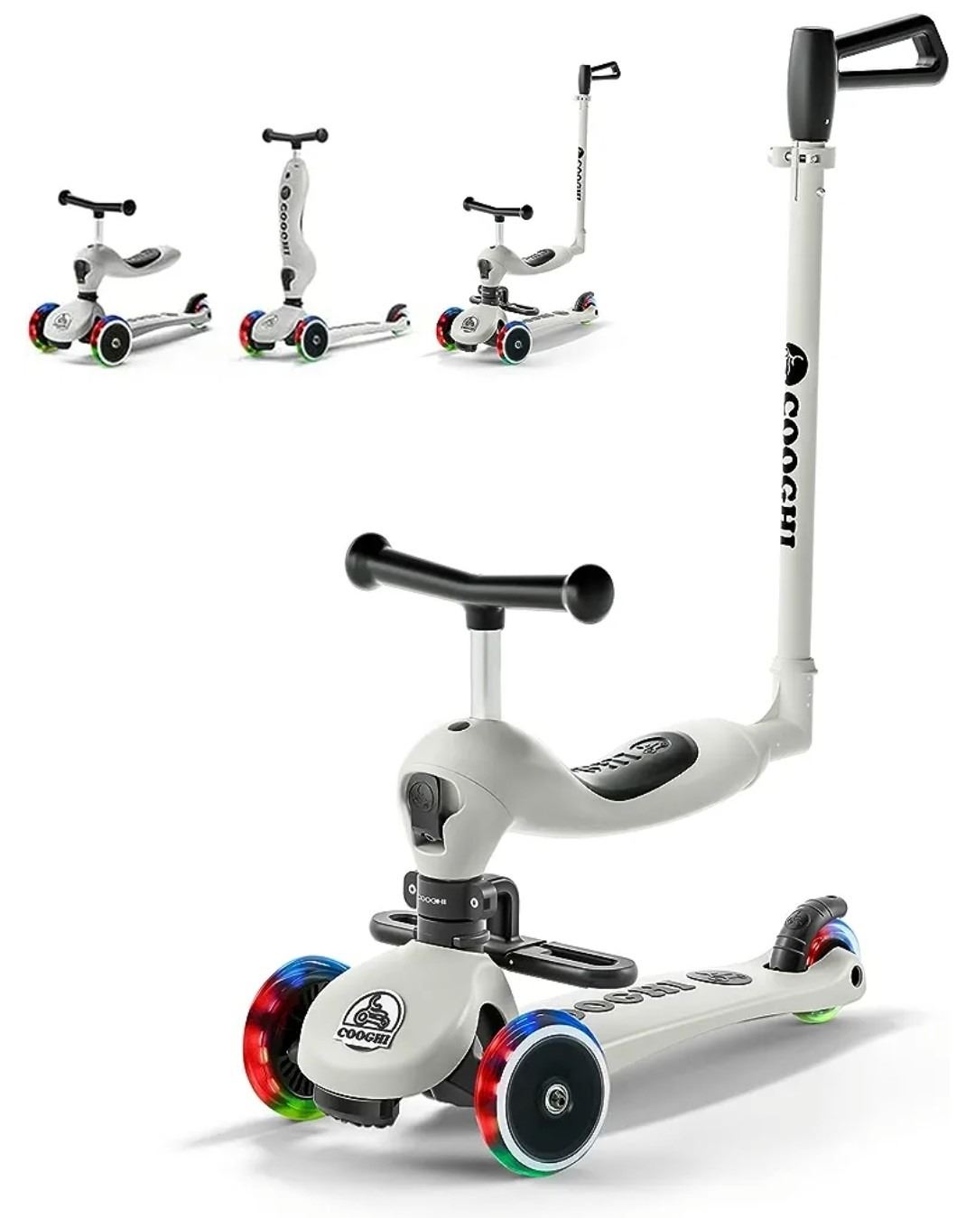 Cooghi V3-Flashing Scooter, 3 Ways To Use, Pushchair, Walking Bike, Scooter, Grey, Ages 1 to 5, Shelf Pull, New Condition