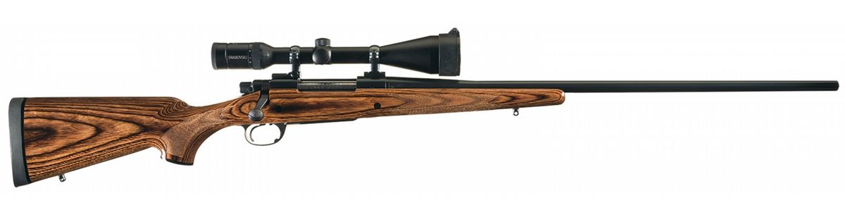 The barrel is manufactured without sights. Checkered pistol grip stock with a factory recoil pad and sling swivel studs. With Swarovski 4-12x50 A Habicht scope.