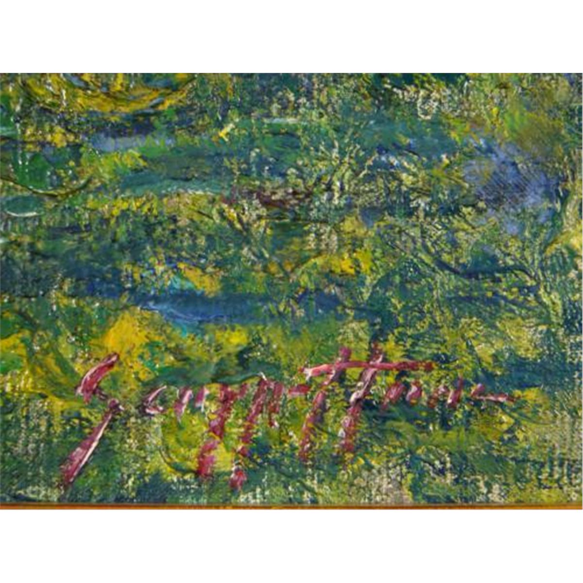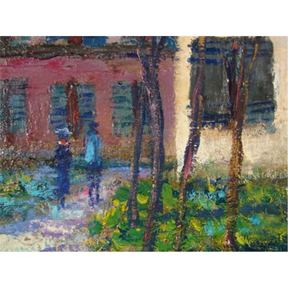 This very handsome original contemporary Impressionist painting is by James Scoppettone, avidly collected and critically acclaimed American artist: Title: "Montmartre in Winter"Oil on canvasCanvas: 18 × 24Framed size: 20½ × 26½Signed in the paint LRGood looking carved frame Both painting and frame are in excellent conditionCertificate of Authenticity issued by Midwest Estate BuyersJames Scoppettone's work is represented in private collections and museums nationally and throughout the world. Internationally his works are in collections in Singapore, Sweden, Ireland, France, Great Britain, Italy, Japan, Saudi Arabia and Australia. Celebrity collectors include Red Skelton; Dick Smothers; Amy Grant; Steve Jobs; William Agee, and Eddie DeBartolo, Jr. * A gem!