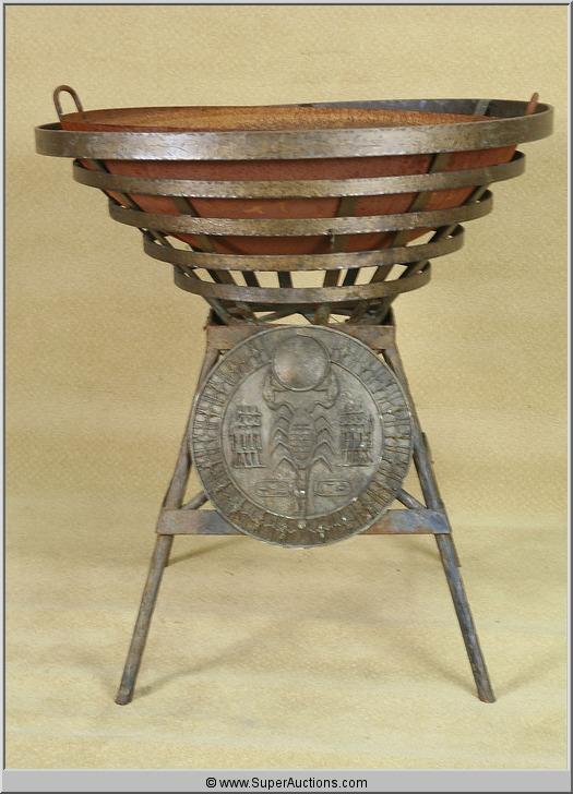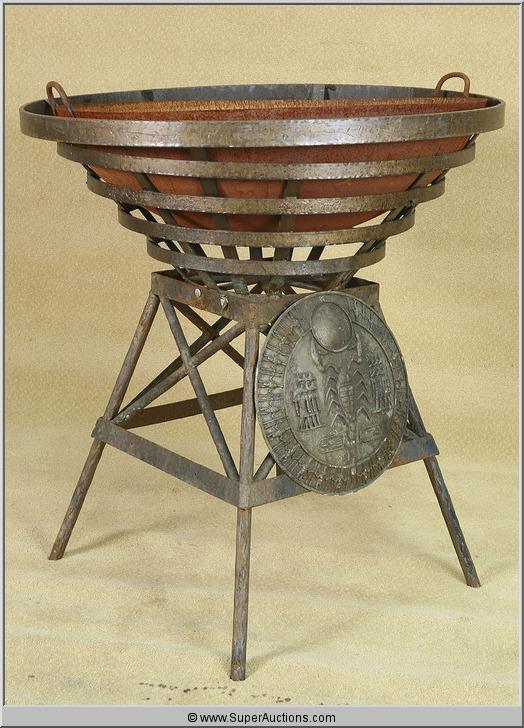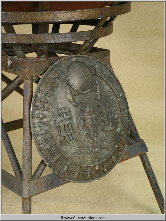 A removable iron heavy Fire Dish on a Steel Stand which comes from the 2002 smash hit "Scorpion King". This set is unique as it is the one Fire Stand with with the 'Scorpion Crest' along the front {33" Diameter X 37" Tall}