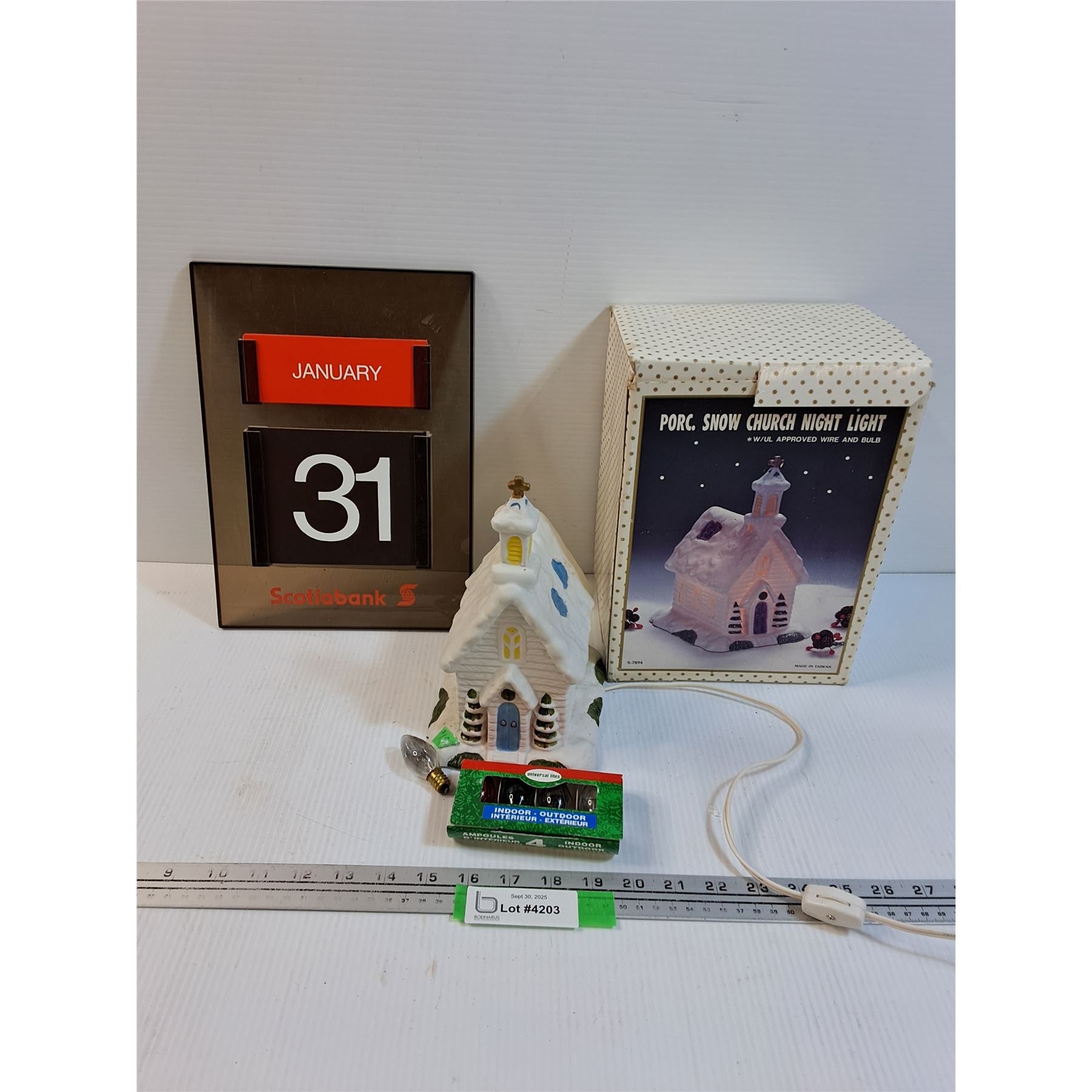 Scotiabank Calendar & Snowy Church Decor w/Light - Works