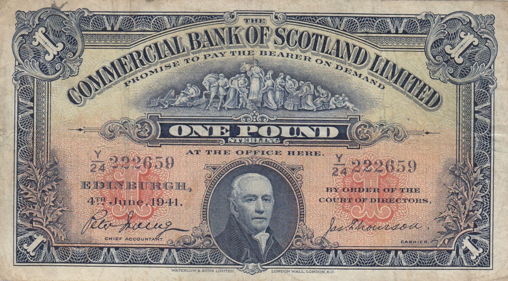 Scotland, 1 Pound, 1941, VF, ps331br/serial number: Y/24 222659, The Commercial Bank Of Scotland Lim