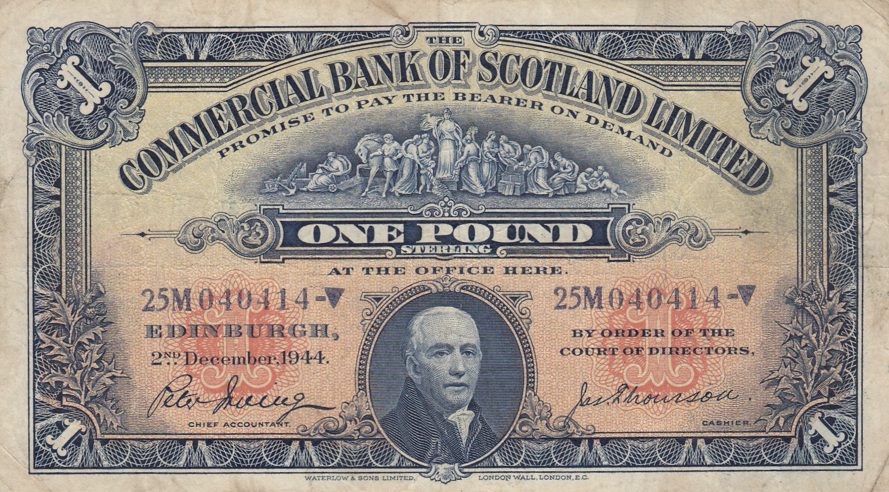 Scotland, 1 Pound, 1944, VF, ps331br/serial number: 25M 040414, The Commercial Bank Of Scotland Limited