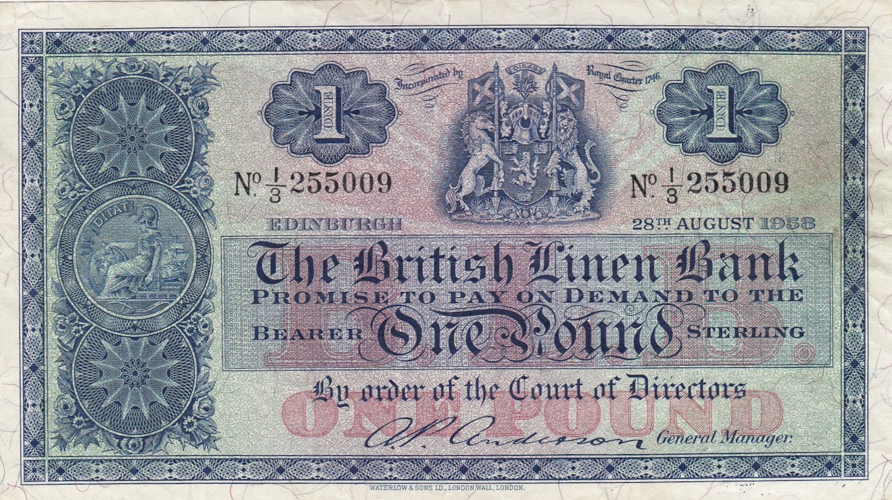 Scotland, 1 Pound, 1958, VF, p166br/serial number: 1/3 255009