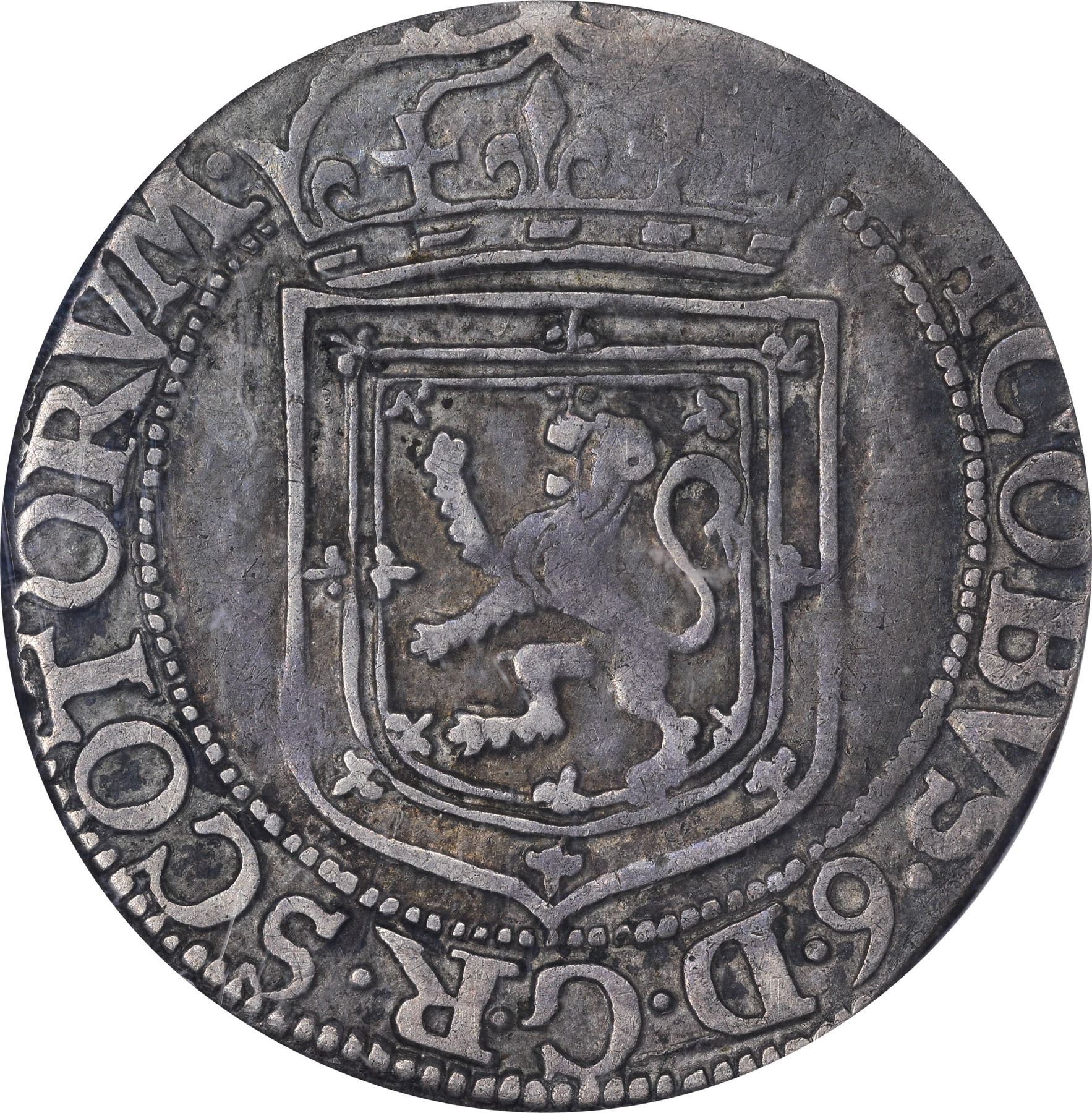 Description: Hammered. The attractive steel-gray surfaces of this silver merk – half dollar sized for diameter comparison – are evenly worn where fully struck, and no marks of any sort address the unaided eye. Choice and a must-have type among coinage of the era in the British Isles.