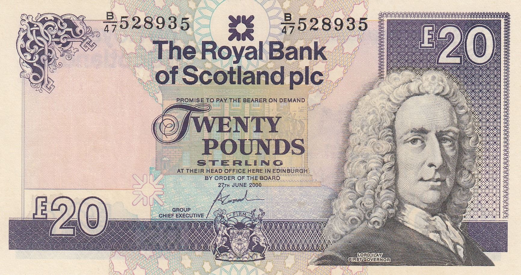 Scotland, 20 Pounds, 2000, AUNC, p354dbr/serial number: B/47 528935