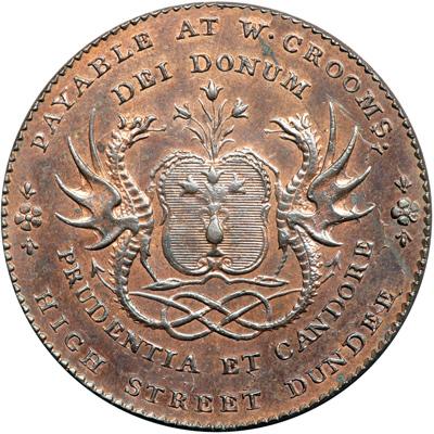 Scotland. Angusshire. Dundee. Halfpenny, ND. D&H-12. Edge: Plain. Shield of arms. Reverse: Legend. NGC graded MS-63 Brown.