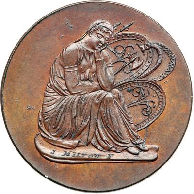 Scotland. Ayrshire. Fullerton's Halfpenny, ND. D&H-7. by J. Milton. Edge: Plain. Bare-headed bust right. Reverse: Female seated in mourning over military trophies. Reverse die break. Rare. NGC graded MS-65 Brown.