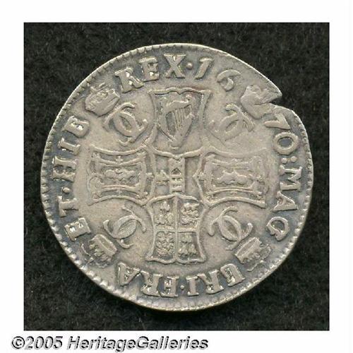 <B>Charles II Merk 1670, </B></I>KM102.1, F-VF, edge flaw as made, scarcer date.