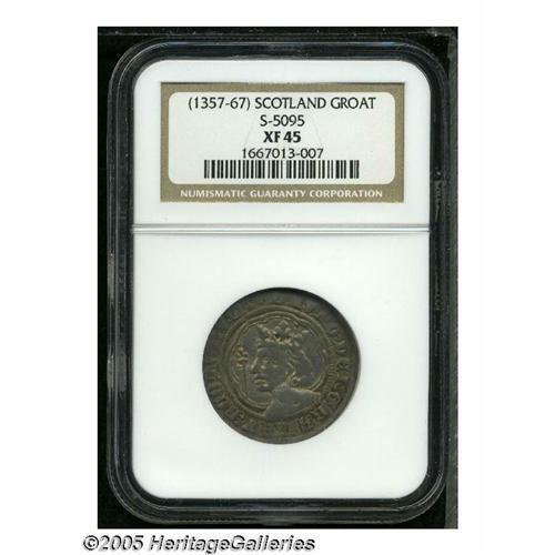 <B>David II Groat (1357-67) Edinburgh, </B></I>Spink 5095, XF45 NGC, very attractive with deep gray toning and well-struck details, including the King's name.