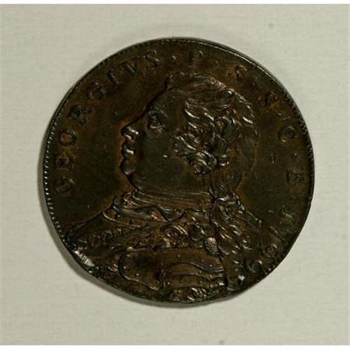 <B>George III pattern copper Halfpenny 1799,</B></I> by Milton for Colonel Fullerton, plain (irregular) edge, a choice piece (some say proof, some say mint state, but there is no sharp collar), an excellent impression with delightful chocolate-brown surfaces showing glimmers of mint red around the devices and letters.<BR><BR><b>Shipping:</b> Coins & Currency (<a target="_blank" href="http://www.heritageauctions.com/common/shipping.php">view shipping information</a>)