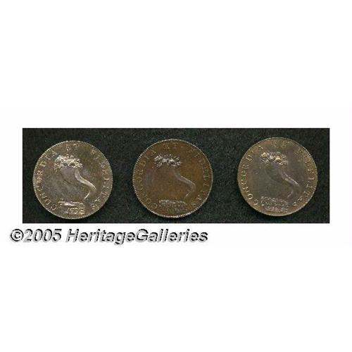 <B>Inverness Halfpenny Condor Tokens as follows:</B></I> D&H 1B, 1793, UNC; 2, 1794, Proof; and 3, 1795, UNC.