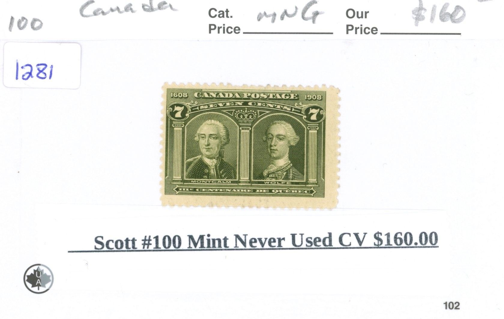 Scott # 100 Mint Never Used CV 160.00$