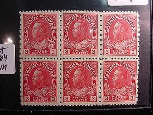 Scott # 184 Canadian 3 Cent Block of 6 Stamps MNH (Superb)