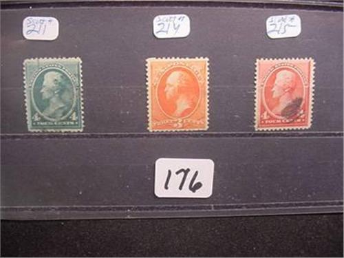 Scott # 211 & 214 (Used), 215 (Mint Hinged) Early U.S. Stamps