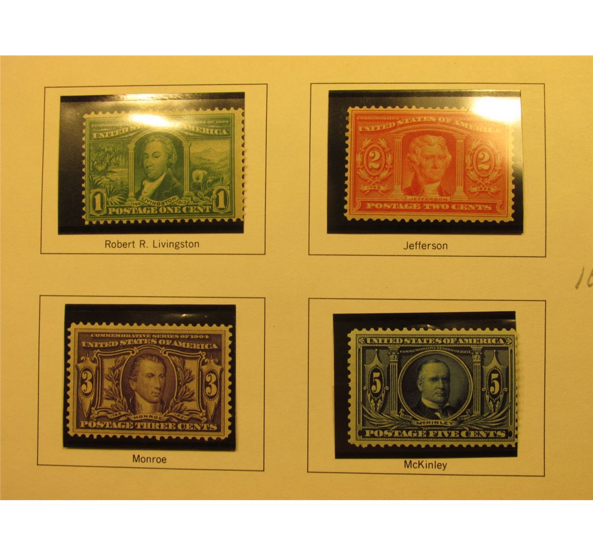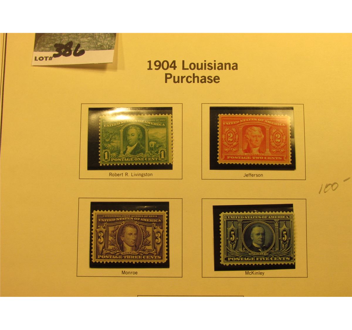 Scott #223-226 1c-5c 1904 Louisiana Purchase. All Mint, 1c M.N.H., 2c Mint Hinged, 3c Mint Partial G