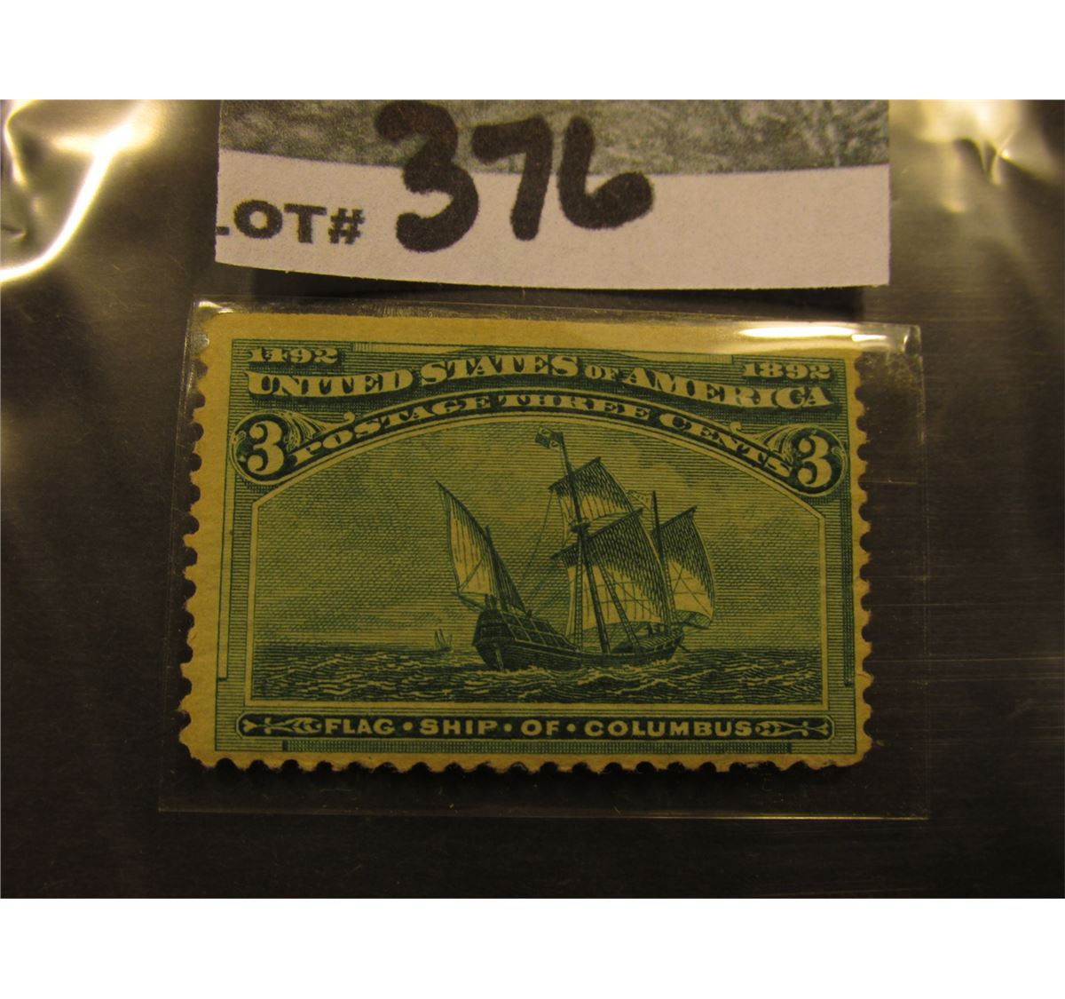 Scott #232 3c Columbian Expo. Green, Mint Hinged Rement.