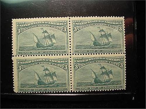 Scott # 232 4 Cent Columbian Stamp Issue - Block of 4 (2 NH & 2 LH)