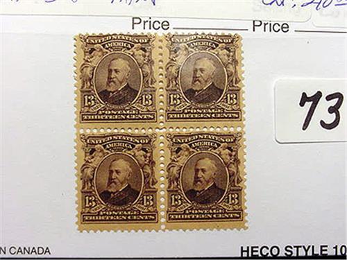 Scott #308 .13 Cent Harrison Block of 4 Stamps Mint Hinged