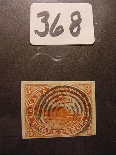 Scott #4 Canada 3 Pence Stamp w/ 3 Full Margins & Nice Bullseye Cancels