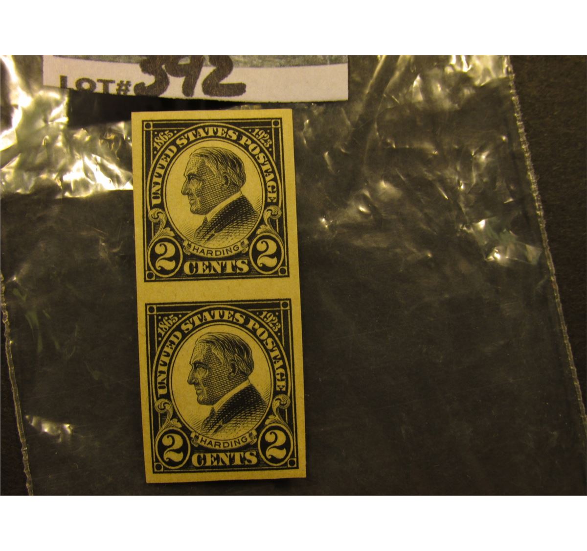 Scott #611 Mint Imperforated pair Top Stamp Hinged.