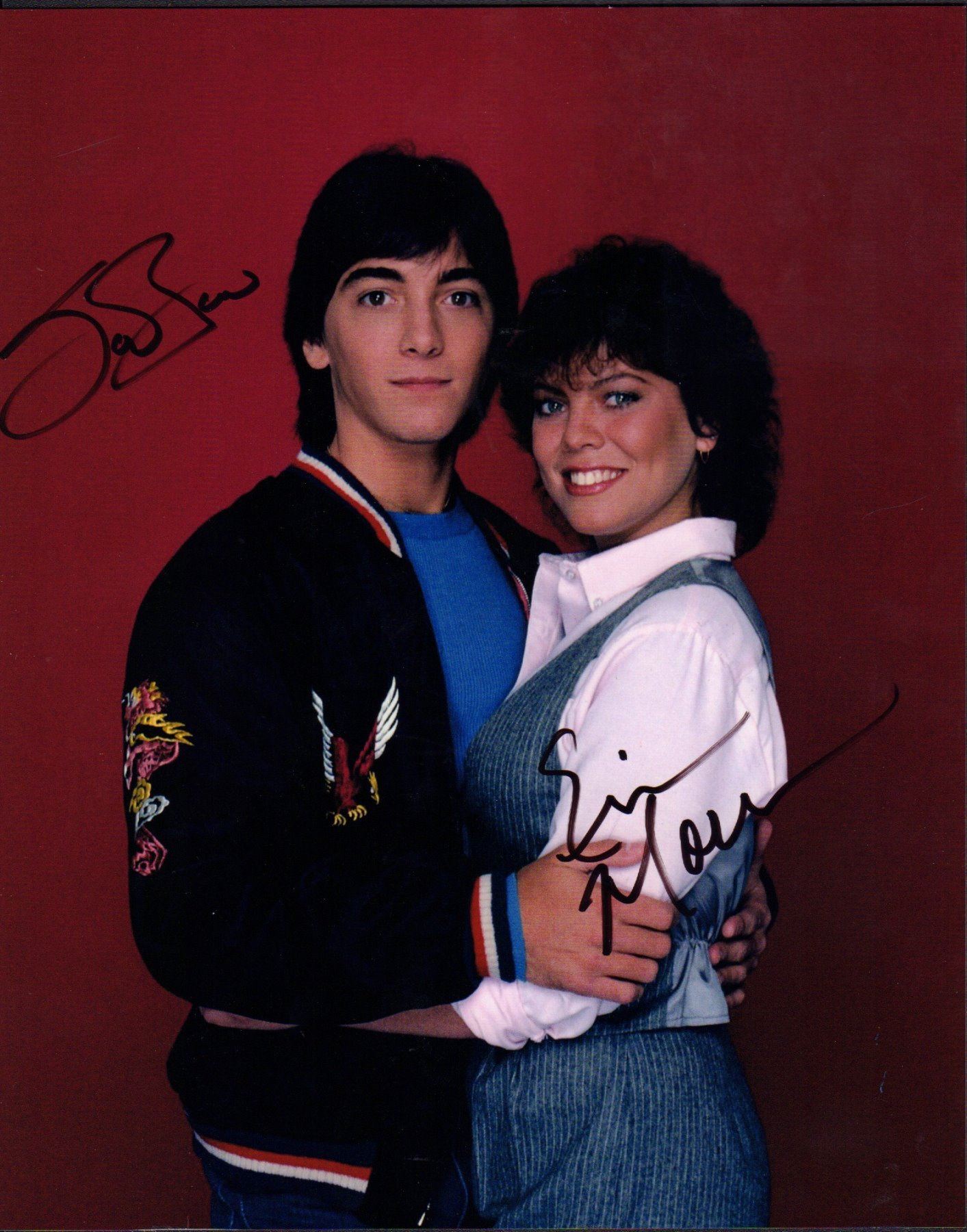 Color 8x10 photograph from the series Joanie Loves Chachi signed by stars Scott Baio and Erin Moran. There is a small amount of scratching on the photo but nothing that affects the signatures. All items come with a certificate of authenticity good for the life of the piece.