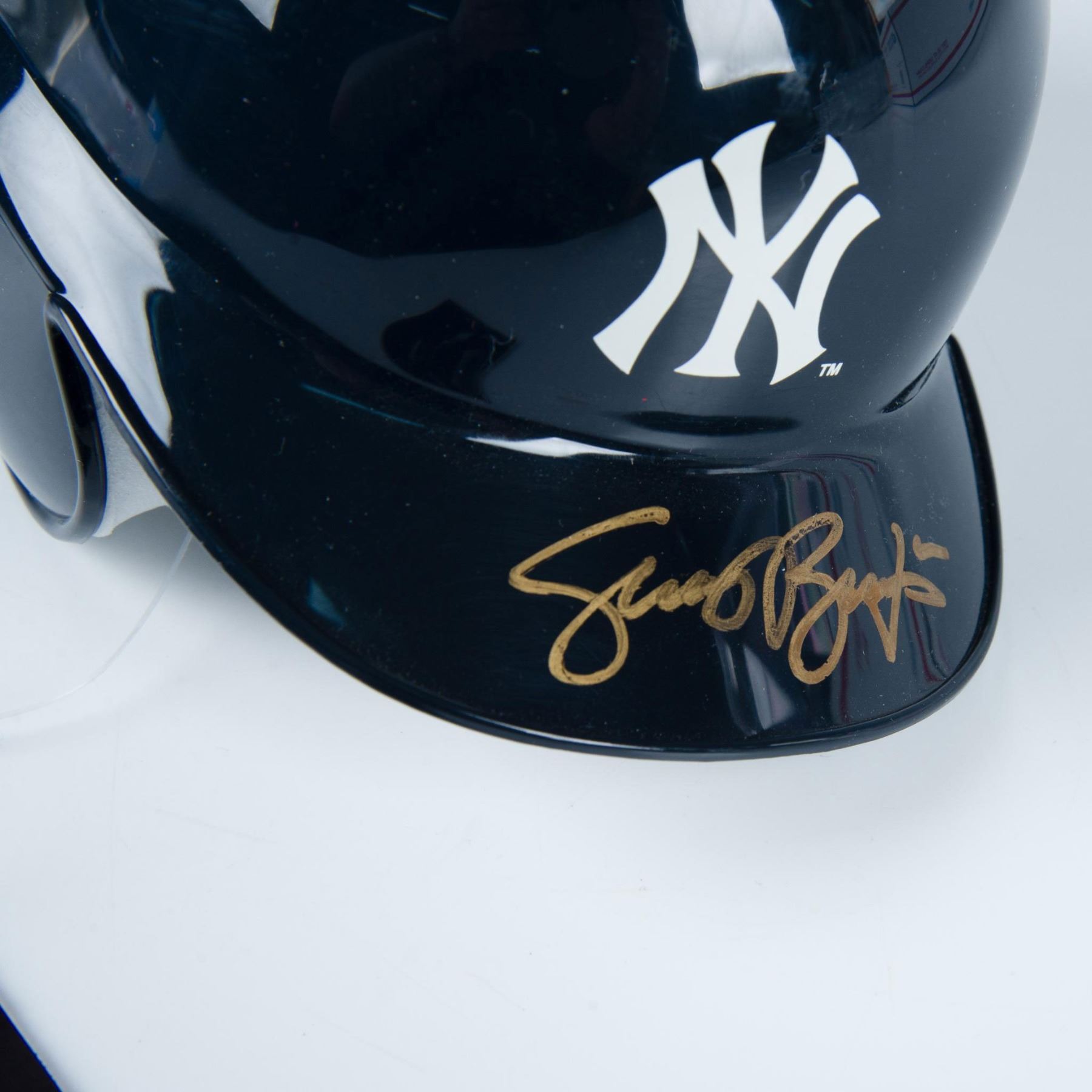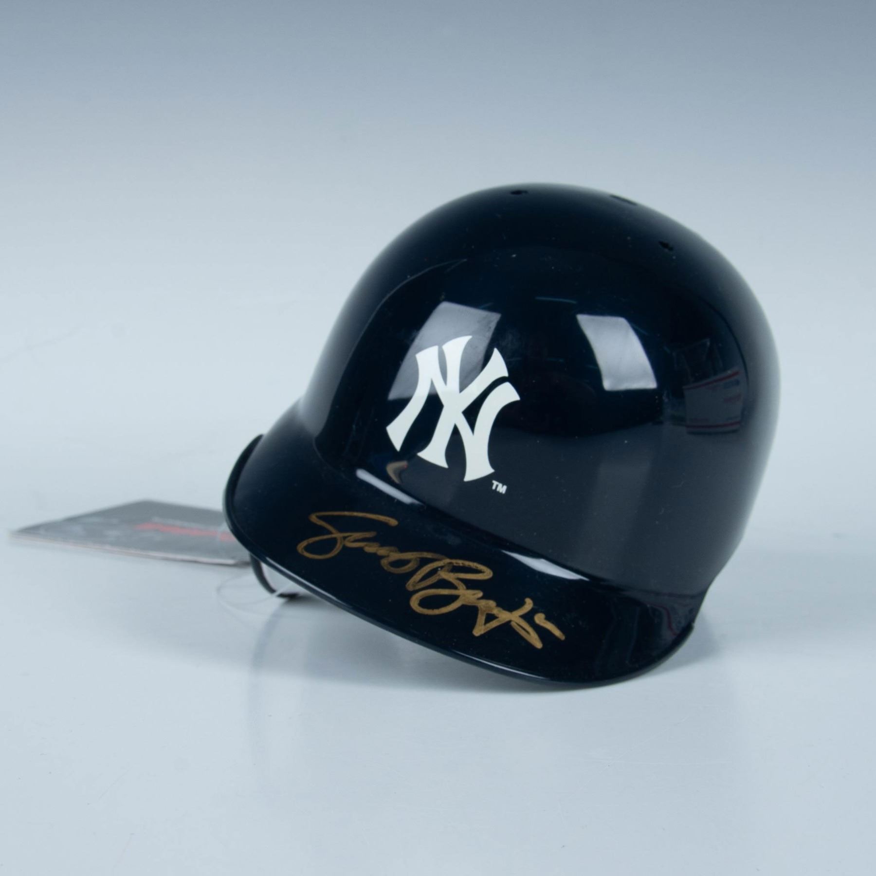This is a miniature of an official MLB batting helmet with New York Yankees logo on the front and signed in gold by Scott Brosius. Certificate of Authenticity from Just Rookies II included. This item comes in a display case that measures 8"L x 6"W x 6.25"H. Dimensions: 7"L x 4.5"W x 5"H