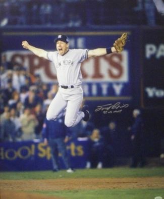 In the winter of 1997 the New York Yankees made what seemed then a small trade that sent Kenny Rogers to Oakland for Scott Brosius. This trade would pay off for years to come as the Yankees would have a solid third baseman for four seasons. Brosius led the Yankees in the 1998 World Series with a .471 avg two home runs and six RBI's. This New York Yankees World Series 16x20 Photo is hand-signed by Scott Brosius and inscribed "98 WS MVP." It includes a Leaf Hologram and Certificate of Authenticity from Athlon Sports.