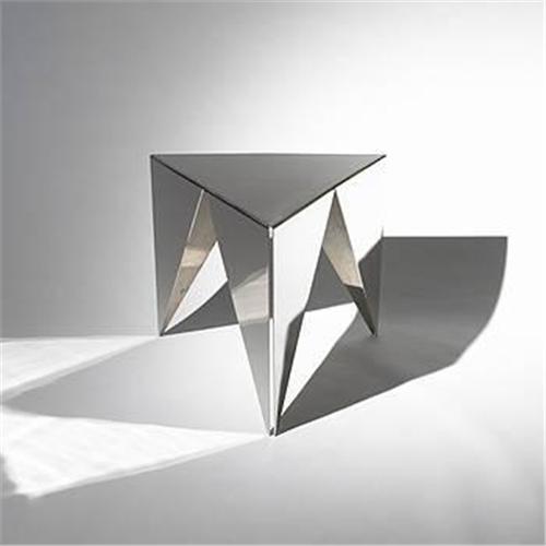 Scott Burton<BR>Hectapod table<BR>USA, 1982<BR>folded nickel-plated steel<BR>20.75"w x 24"d x 20.5"h<BR>Straddling the fine line between art and furniture, Burton's table echoes Constructivist compositions in a utilitarian object. This table is formed using a single piece of folded steel with a reveal at the edges creating a juxtaposition of negative and positive space.<BR>From the edition of six.<BR>Literature: Scott Burton, Richardson, pg. 23<BR>Provenance: Private collection, Philadelphia<BR><BR><BR>