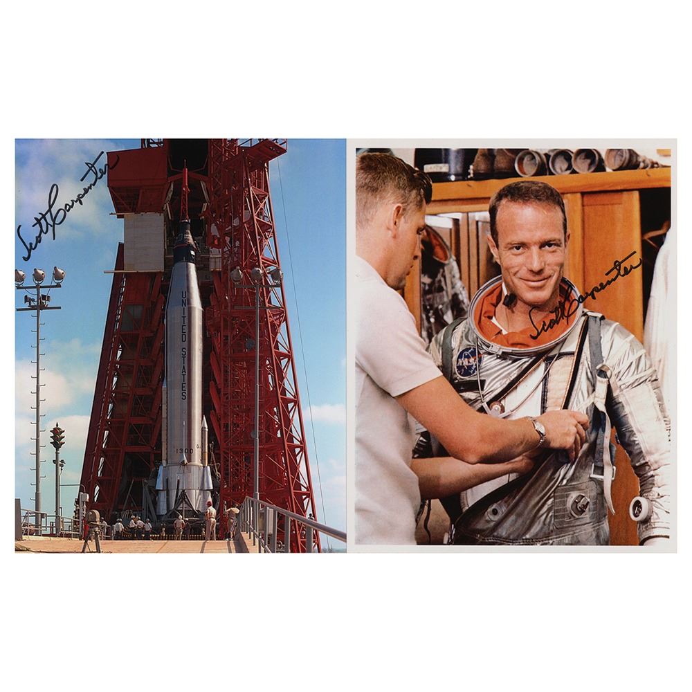 Two color satin-finish 8 x 10 photos signed in black felt tip by Mercury astronaut Scott Carpenter. In overall very fine condition.