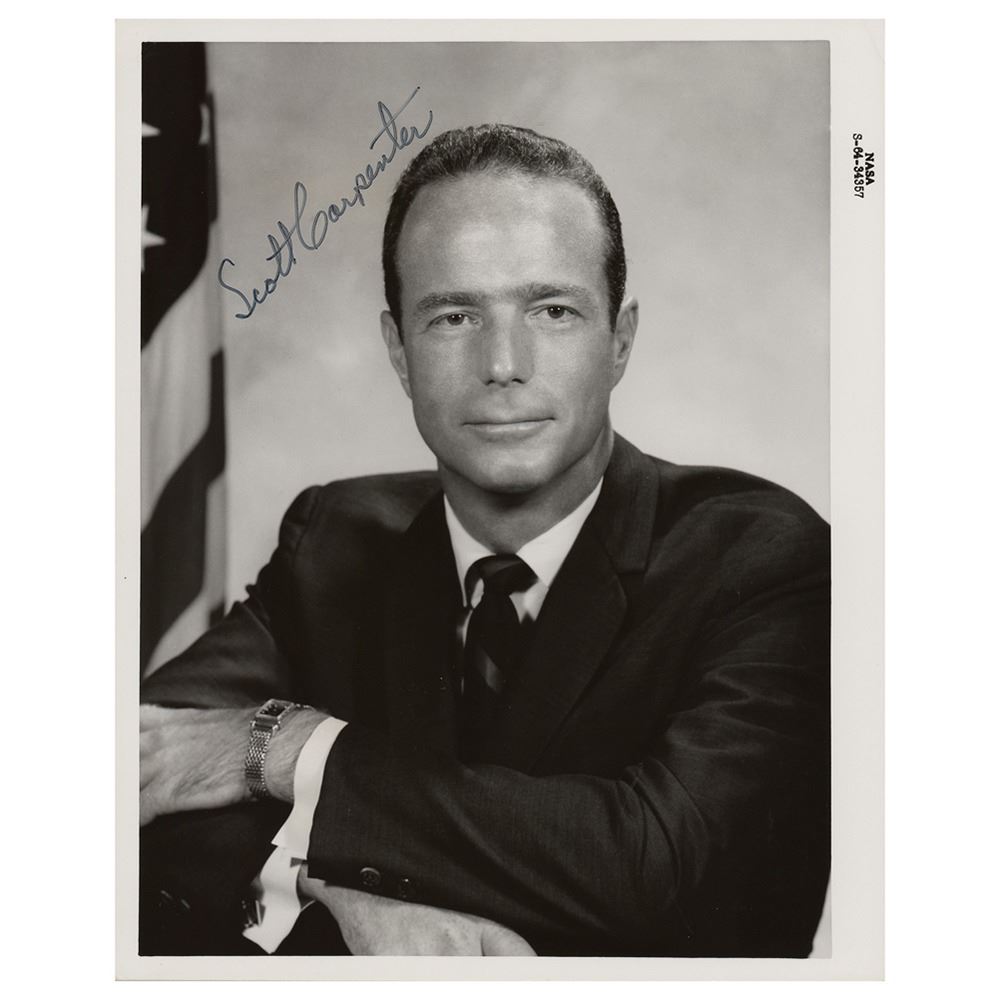 Official glossy 8 x 10 black-numbered photo of Carpenter in formal attire, signed in black felt tip. In fine condition, with a couple of small creases.