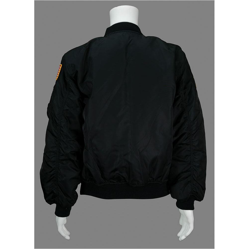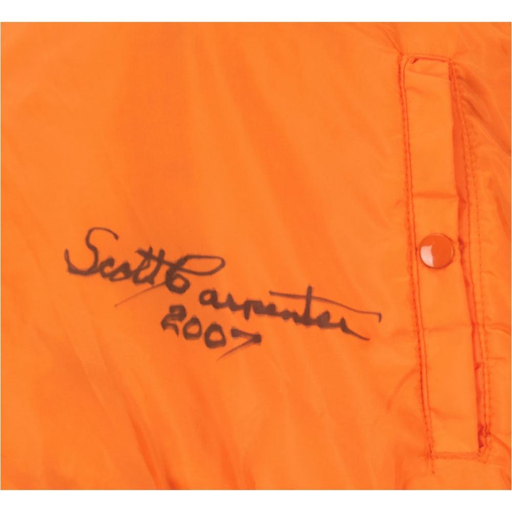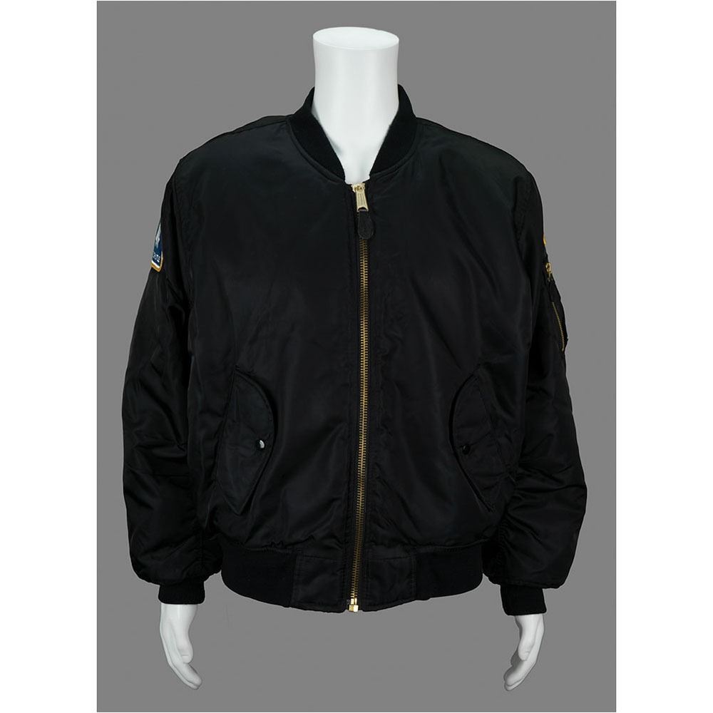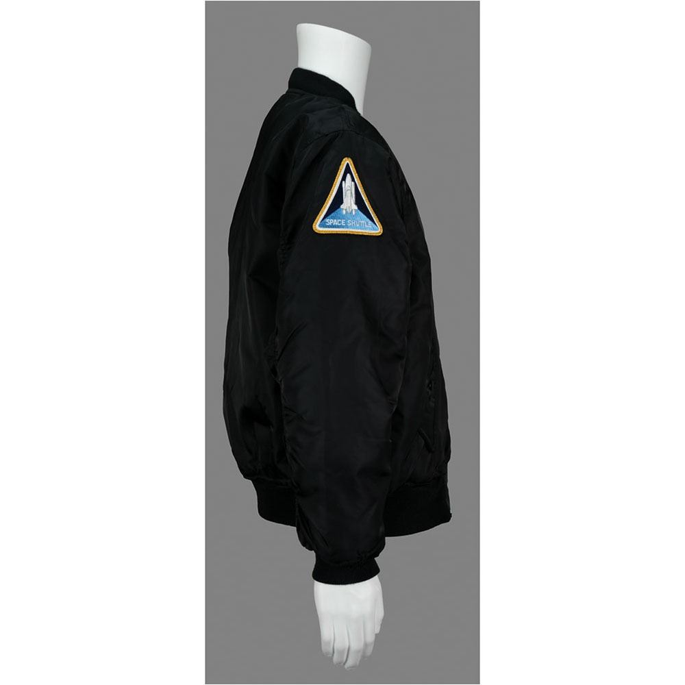Scott Carpenter‰Ûªs personally-owned and -worn black flight jacket, with American flag and Space Shuttle patches to shoulders, signed in the inner left waist in black felt tip, ‰ÛÏScott Carpenter, 2007.‰Û The inner collar is marked as ‰ÛÏLge. 3.‰Û The plush zippered flight jacket features knit collar, cuffs, and waistband, and pockets to front, left arm, and interior sides. In fine condition. Accompanied by a certificate of authenticity from Farthest Reaches, which affirms that this jacket derives from the Carpenter Family Collection.