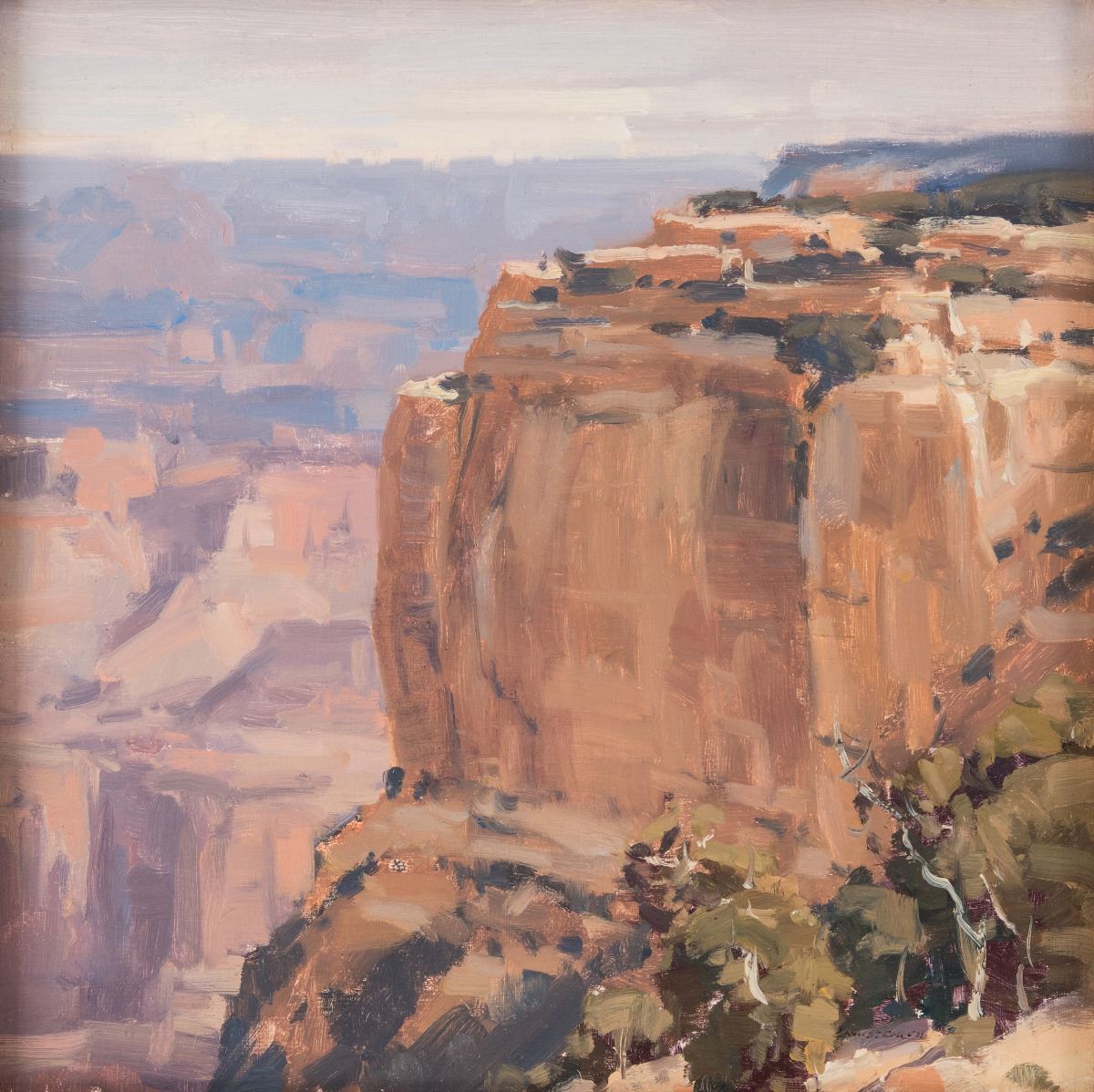Scott Christensen (1962 - ). Canyon Morning. 12" x 12" oil on board. Signed lower right. Verso: Titled.