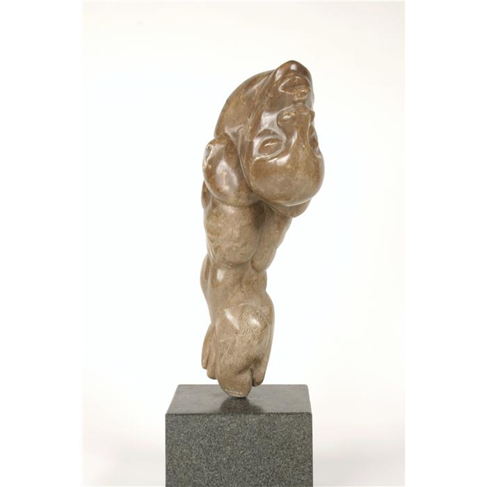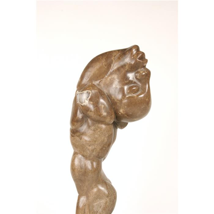 Scott Donadio ( b. 1967 ), California Artist, 21h x 8.5w x 7d inches, brown alabaster, signed, dated. In original very good condition.