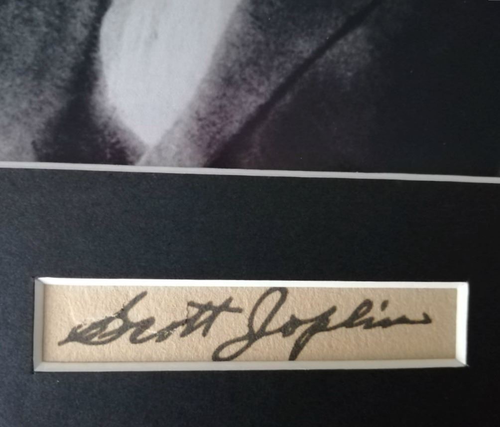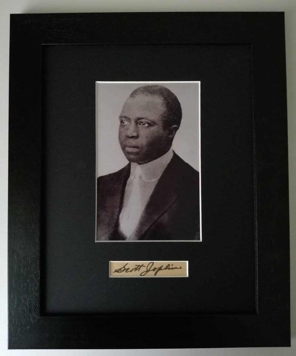 Scott Joplin was an American composer and pianist. Joplin achieved fame for his ragtime compositions and was dubbed the "King of Ragtime". During his brief career, he wrote over 100 original ragtime pieces, one ragtime ballet, and two operas. Scott Joplin signature cutting, mounted and framed. Supplied with coa.