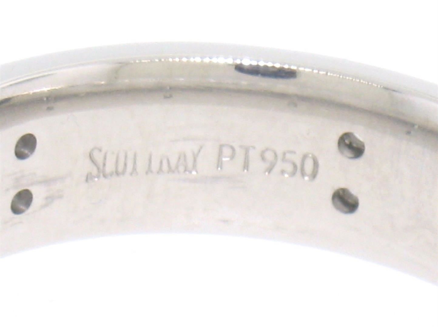An estate solid platinum band ring by Scott kay, with 12 round brilliant cut natural diamonds (E/F- VS1; 0.24ctw ). The ring is size 9.0, weighs a total of 14.40 grams, and measures 6mm wide.