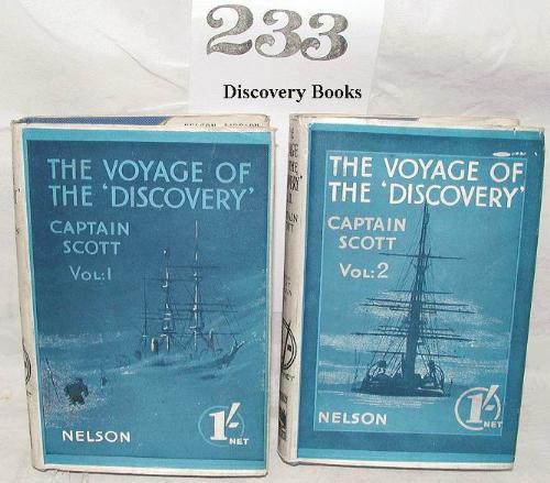 Scott, Robert F. THE VOYAGE OF THE 'DISCOVERY'. London: Thomas Nelson & Sons n.d.(1914?) 2 vols 16mo. 478 & 477pp. Eight plates, folding map. Original cloth, t.e.g. (Vol I only: vol II is un-gilted) A fine, bright & clean copy in original dust jackets. (2)
