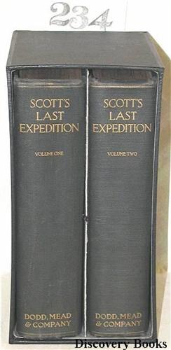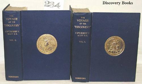 Scott, Robert F. THE VOYAGE OF THE 'DISCOVERY'. New York: Scribner's Sons 1905 First U.S. edition 2 vols. xix(1),556; xii,508pp. Titles in red & black. Plates, some in color, maps incl 2 folding in pockets. Original dark blue cloth, t.e.g., gilt medallions on front boards. Very good, the spines unfaded, minimal wear. (2)