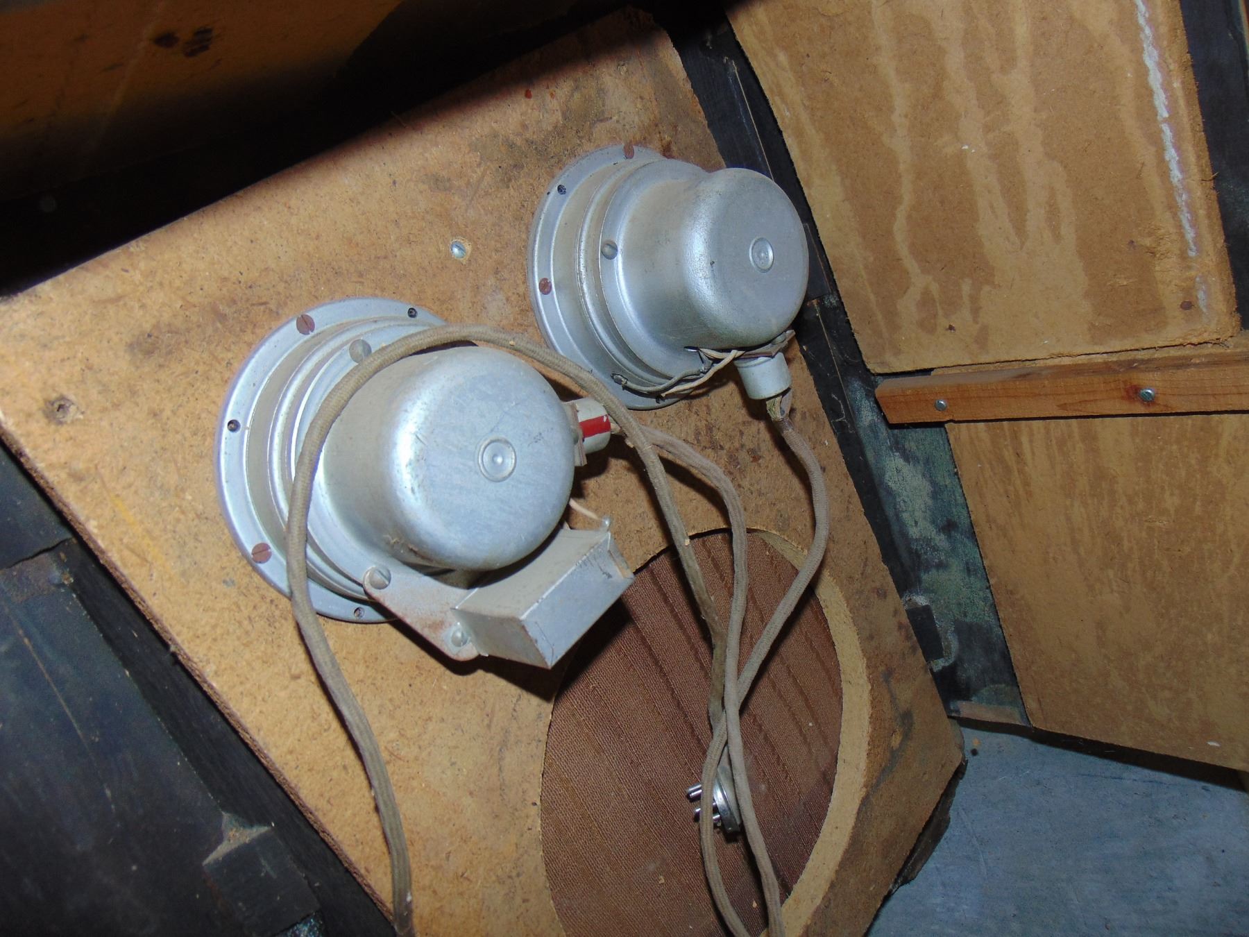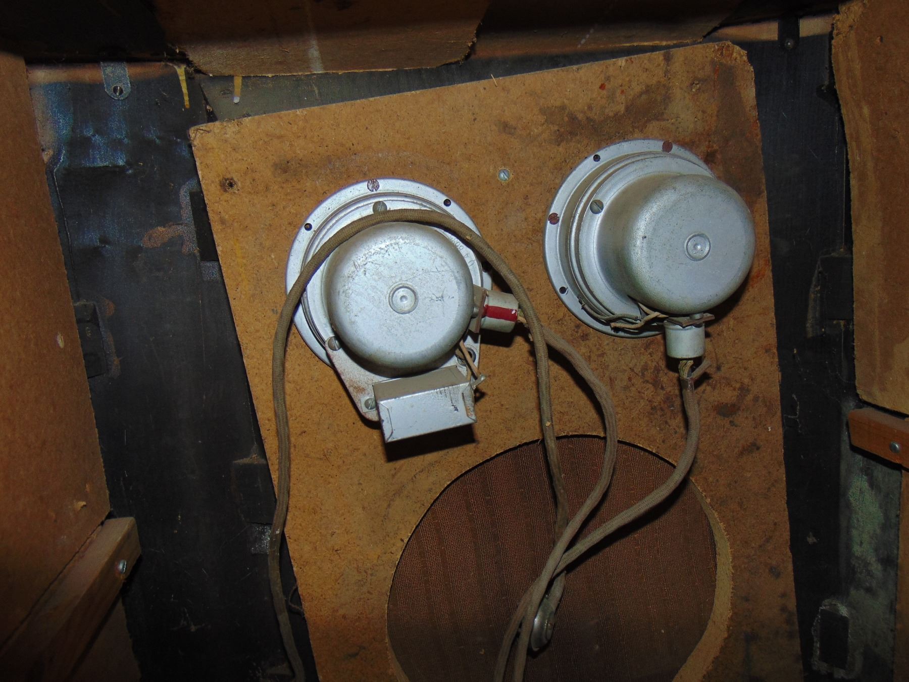 Speaker cabinet with two tweeters, probably Scott; bottom of cabinet is water damaged and will need to be restored