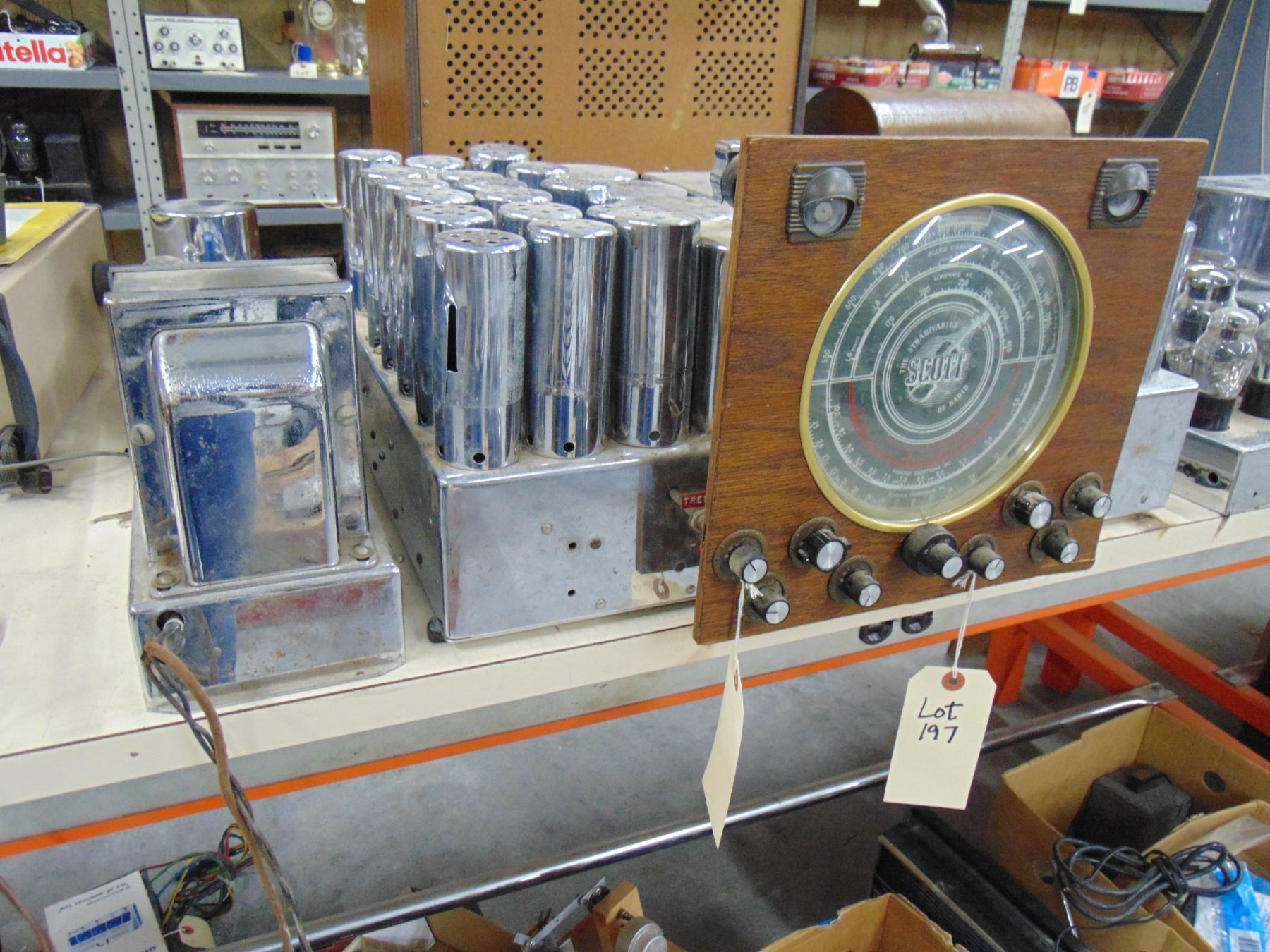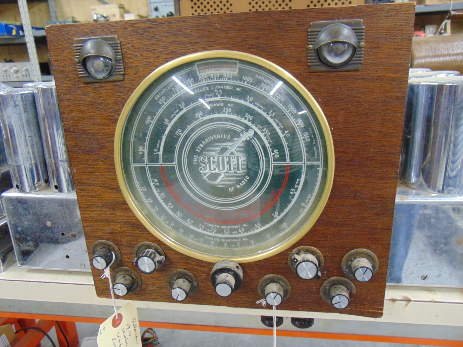 Scott Philharmonic dual tuning eye; beam of light tuning; 30 tube radio; includes power supply and speaker; serial # BB482